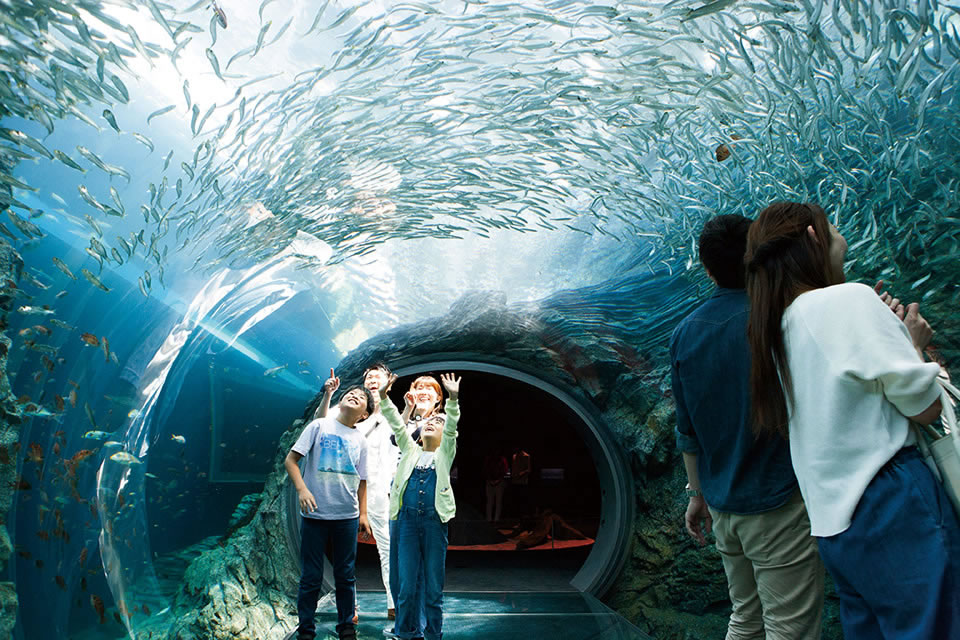 「うみがたり」は、2018年にオープンしたばかりの水族館。日本海を一望できる大水槽「日本海テラス」や、まるで水中にいるような感覚を味わえる水中トンネル「うみがたりチューブ」、県内初展示となるシロイルカなど見どころ満載!