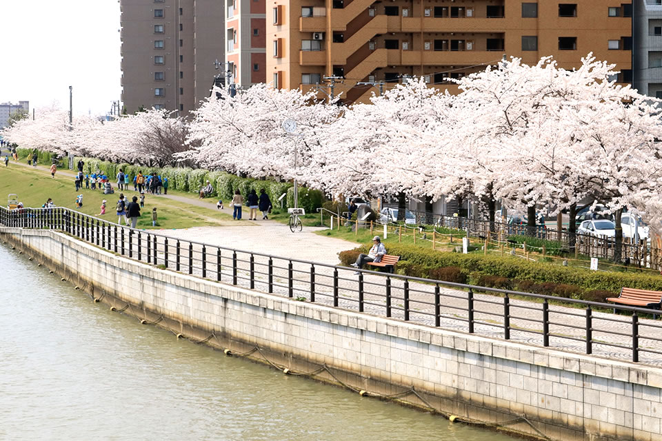 信濃川沿いにあるやすらぎ堤は、春になると約1,000本の桜が満開になるため多くの人で賑わうスポット。遊歩道を散歩しながら写真を撮ったり、友だちとのお花見会場にもGOOD。