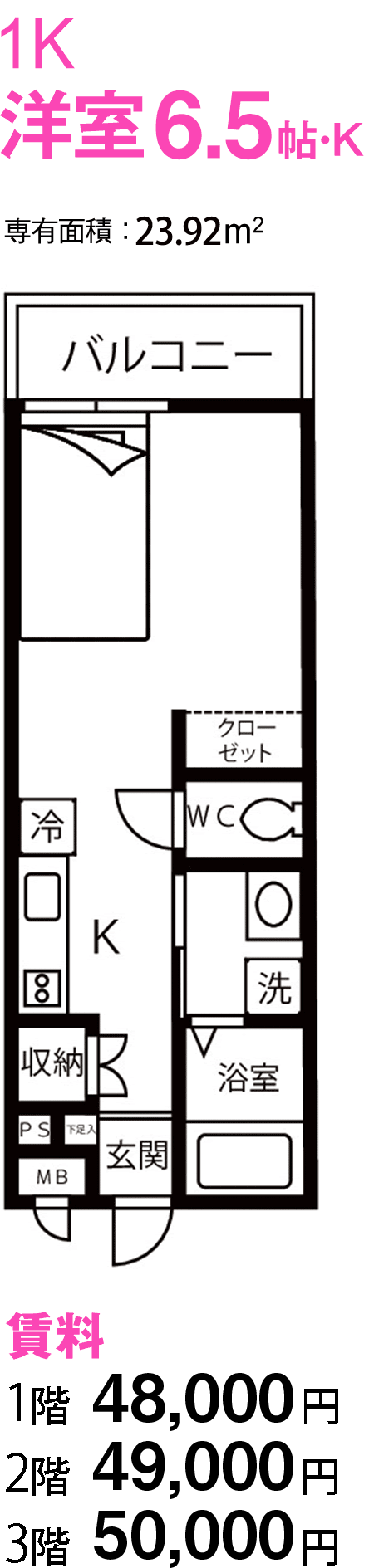 充実した設備をはじめ、冷蔵庫、洗濯機、ベッドフレームがあらかじめお部屋に備え付けてあります。