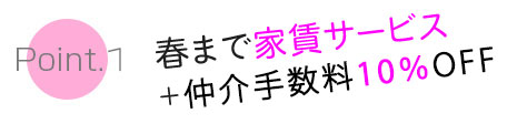 当社では、春からの家賃発OK!合格後すぐに気に入った物件を抑えることができます。さらに仲介手数料10%OFF!※対象外の物件もございます。