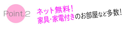 ネット無料や家具・家電付きなど学生さん向けのお部屋を多数取り扱っています!
