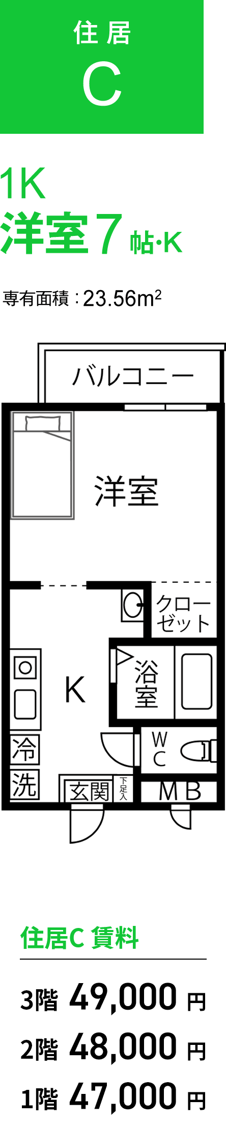 住居C (1K 7帖) |