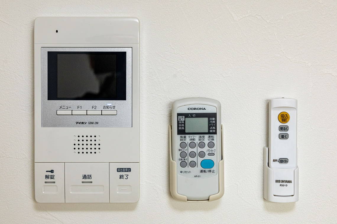 オートロックをはじめモニター付インターホン、防犯カメラも設置され、防犯の高いセキュリティを完備。