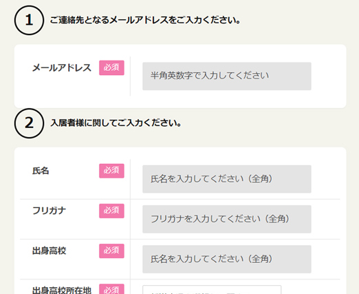 お問合せフォームにて、「合格前予約申込」「入居申込」と記載の上送信してください。
